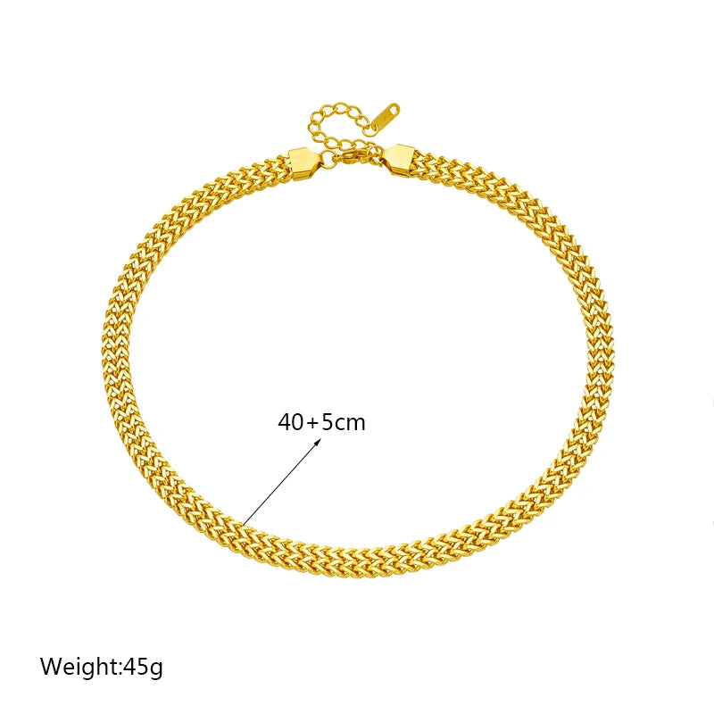 Aus Edelstahl mit 18K Echtgold-Beschichtung, salzwasserfest, kratzfest, kein Anlaufen oder Verfärben. Länge: 40 cm + 5 cm Verlängerung – perfekt für einen markanten Halsabschluss.