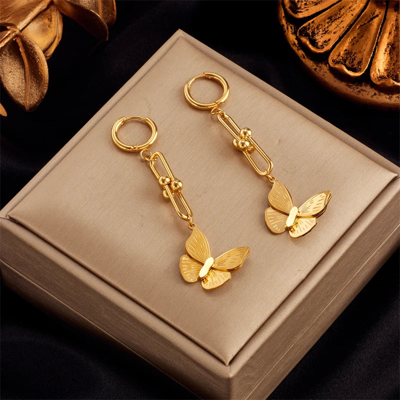 Zart & feminin: Diese langen Ohrhänger mit ziseliertem Schmetterling tanzen bei jeder Bewegung und verleihen deinem Look Leichtigkeit und Eleganz.