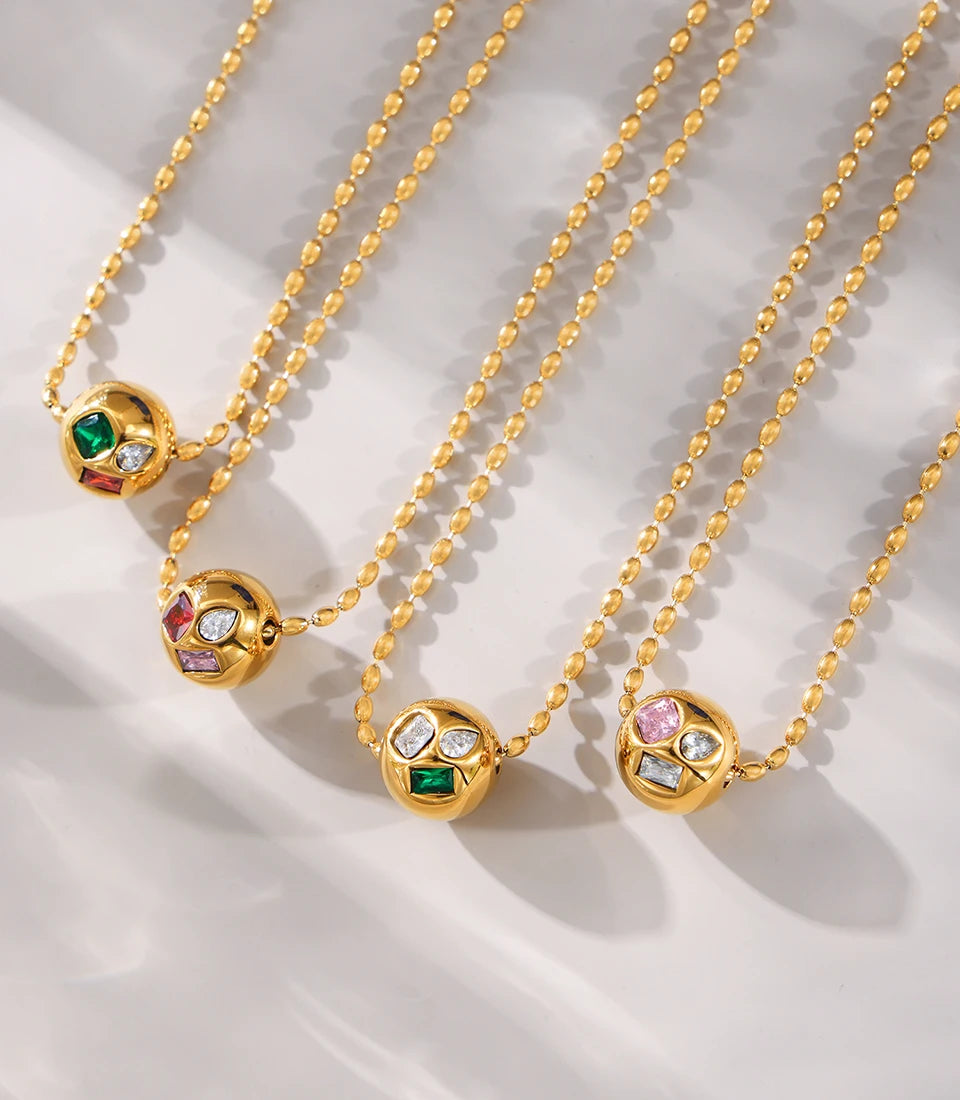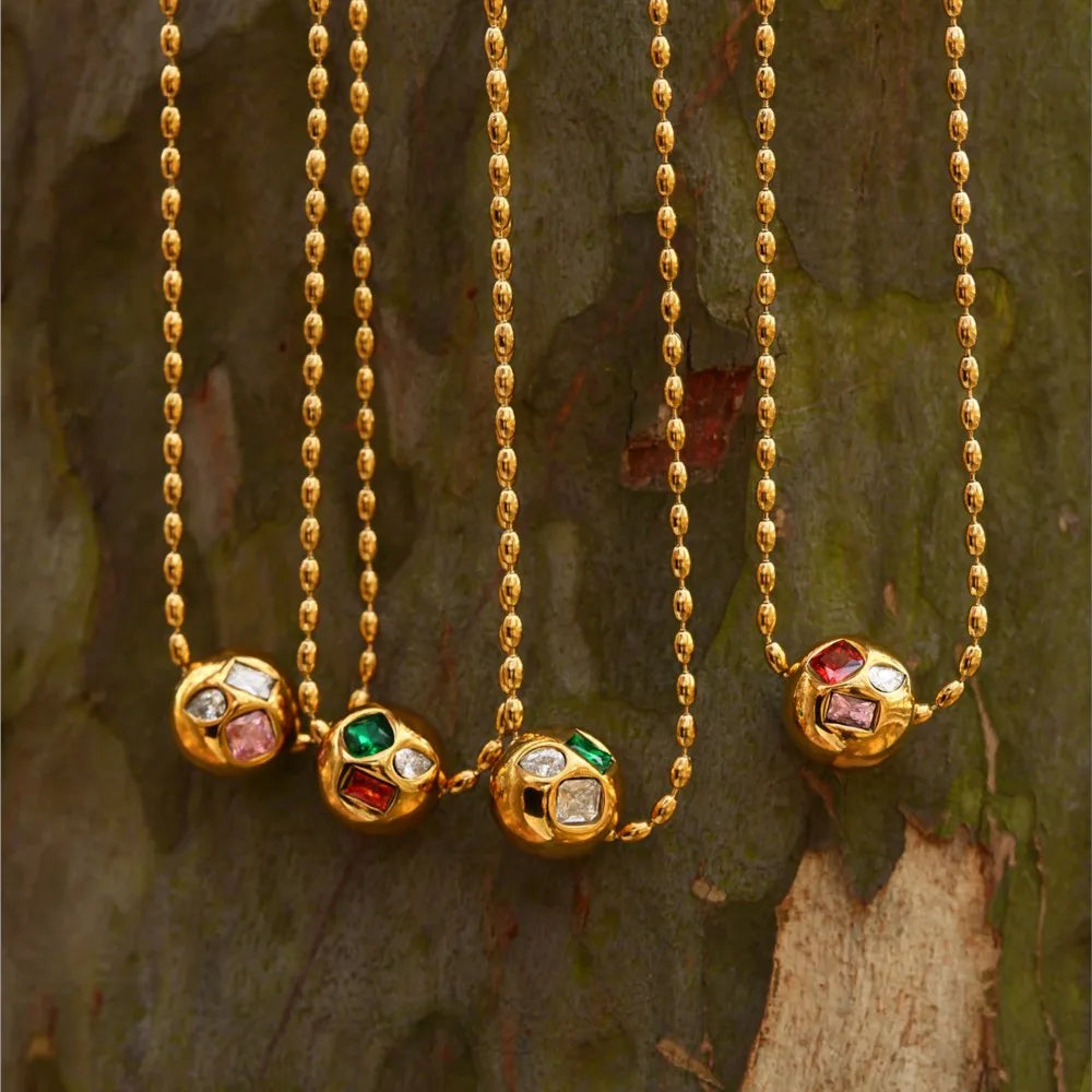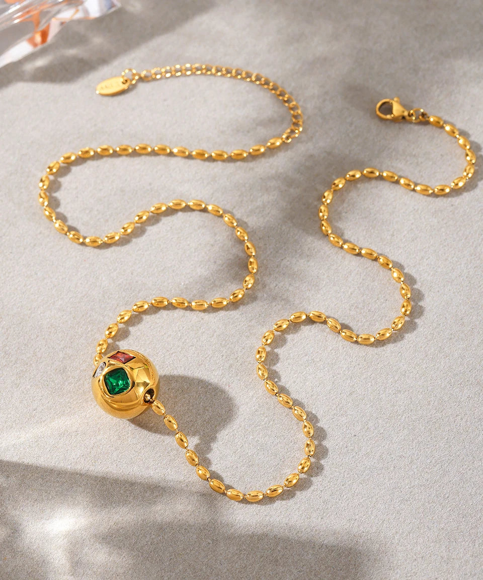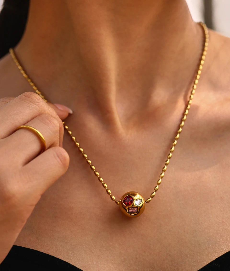 Ein kugelrunder Hingucker mit facettierten Zirkonia in bunten Farbtönen – eingefasst in eine edle, glänzende Kugel. Die filigrane Gliederkette gibt diesem Design einen dezenten Rahmen. Diese Kette bringt sofort Farbe, Leichtigkeit und Stil in jedes Outfit.