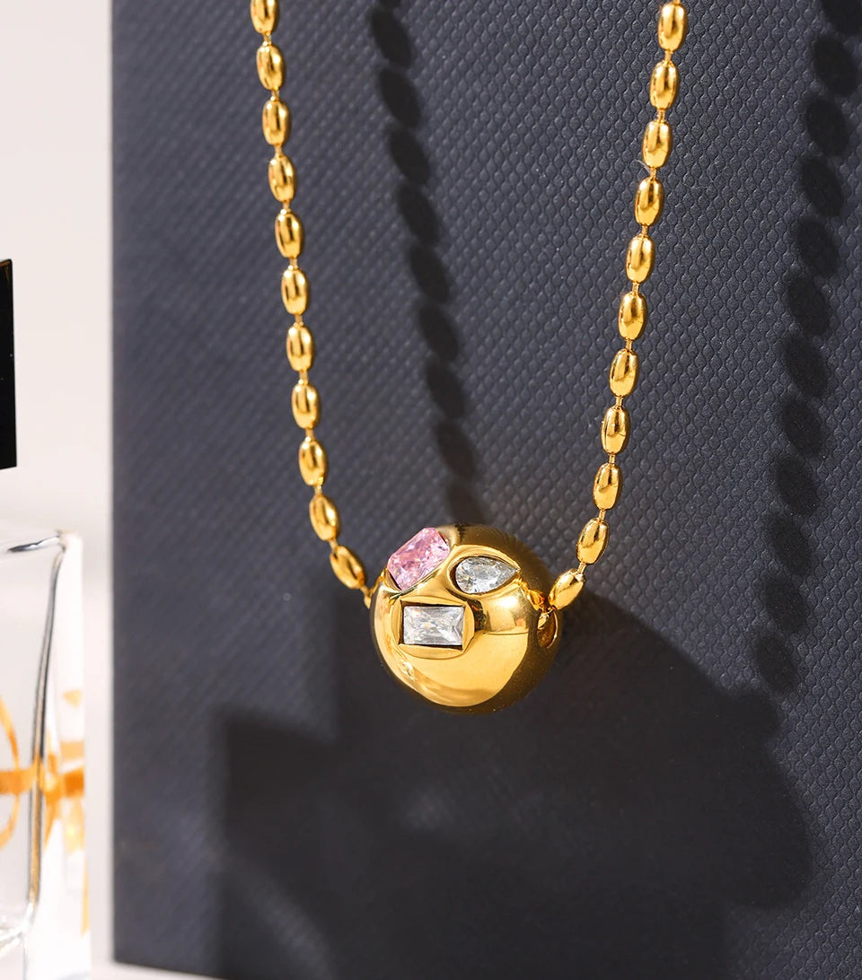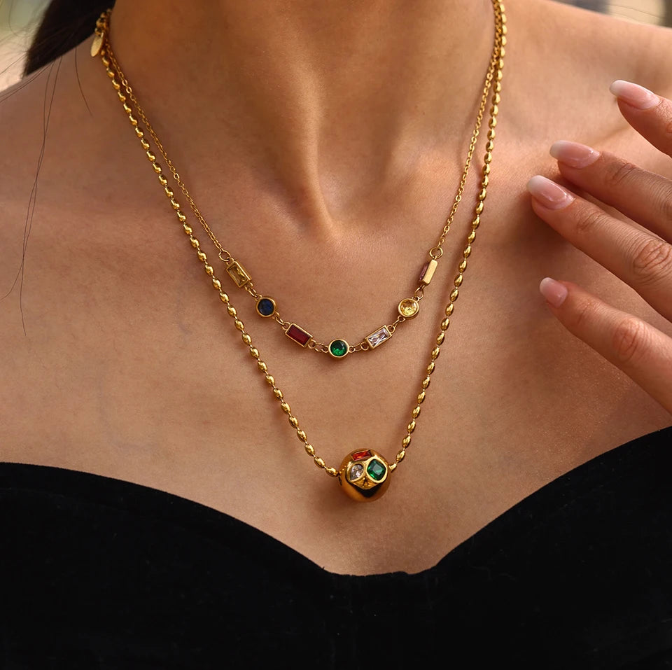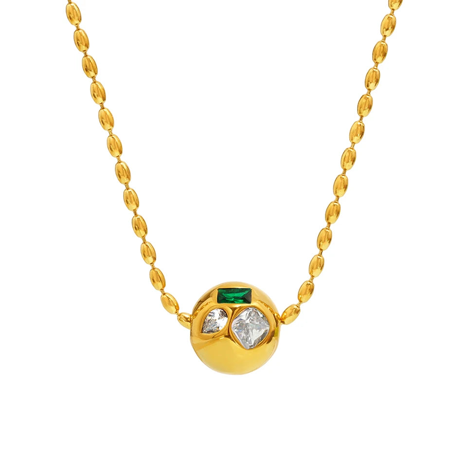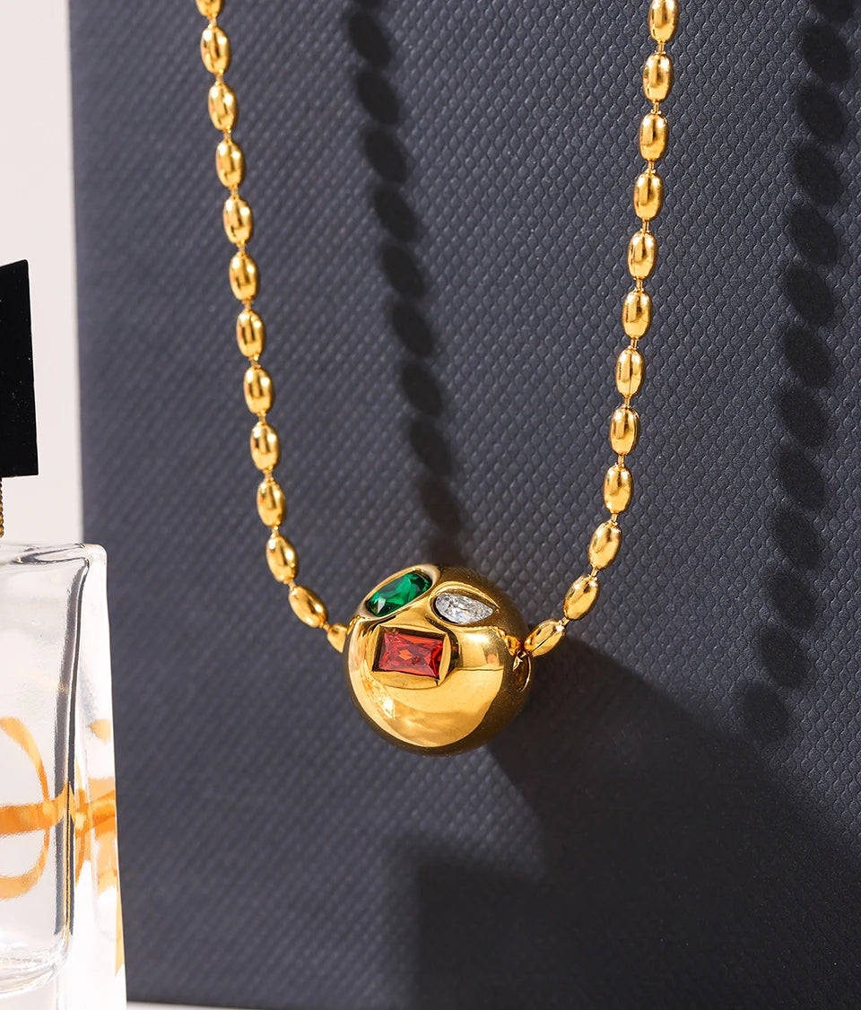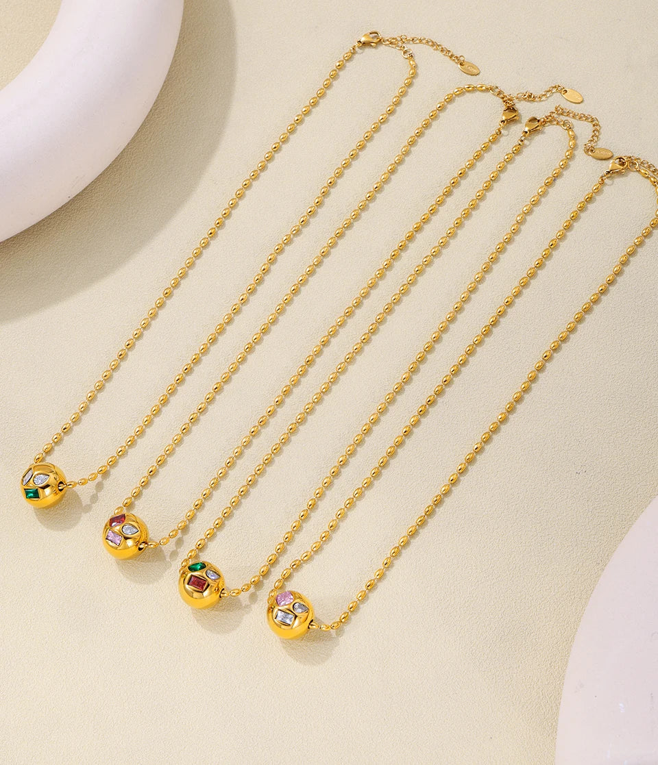Ein kugelrunder Hingucker mit facettierten Zirkonia in bunten Farbtönen – eingefasst in eine edle, glänzende Kugel. Die filigrane Gliederkette gibt diesem Design einen dezenten Rahmen. Diese Kette bringt sofort Farbe, Leichtigkeit und Stil in jedes Outfit.