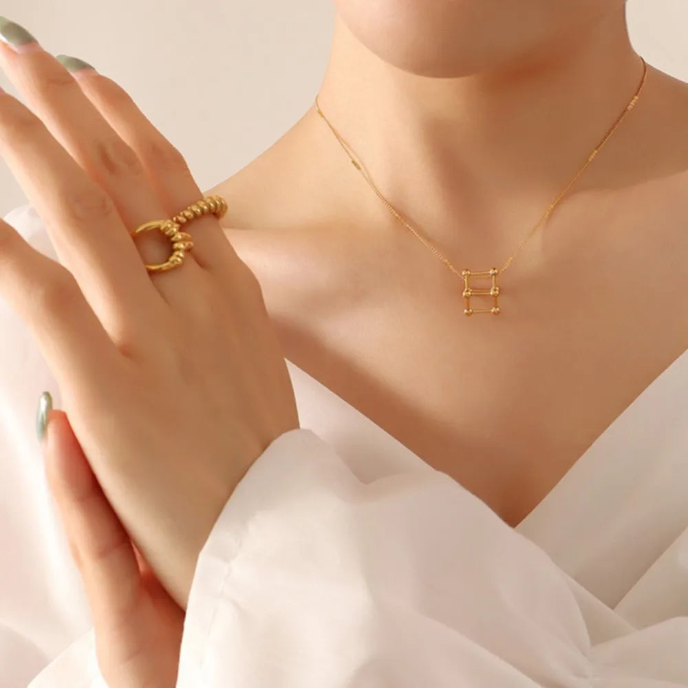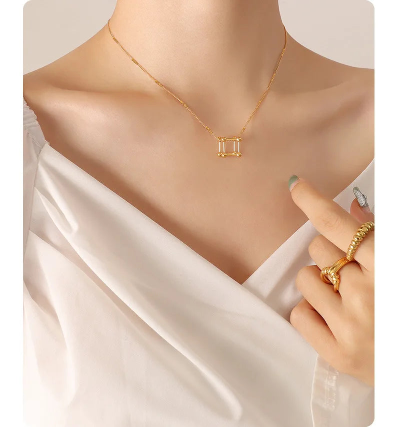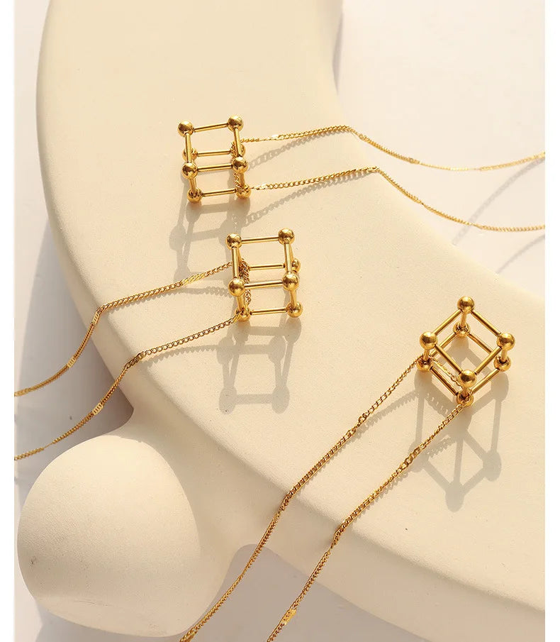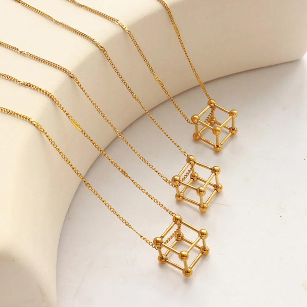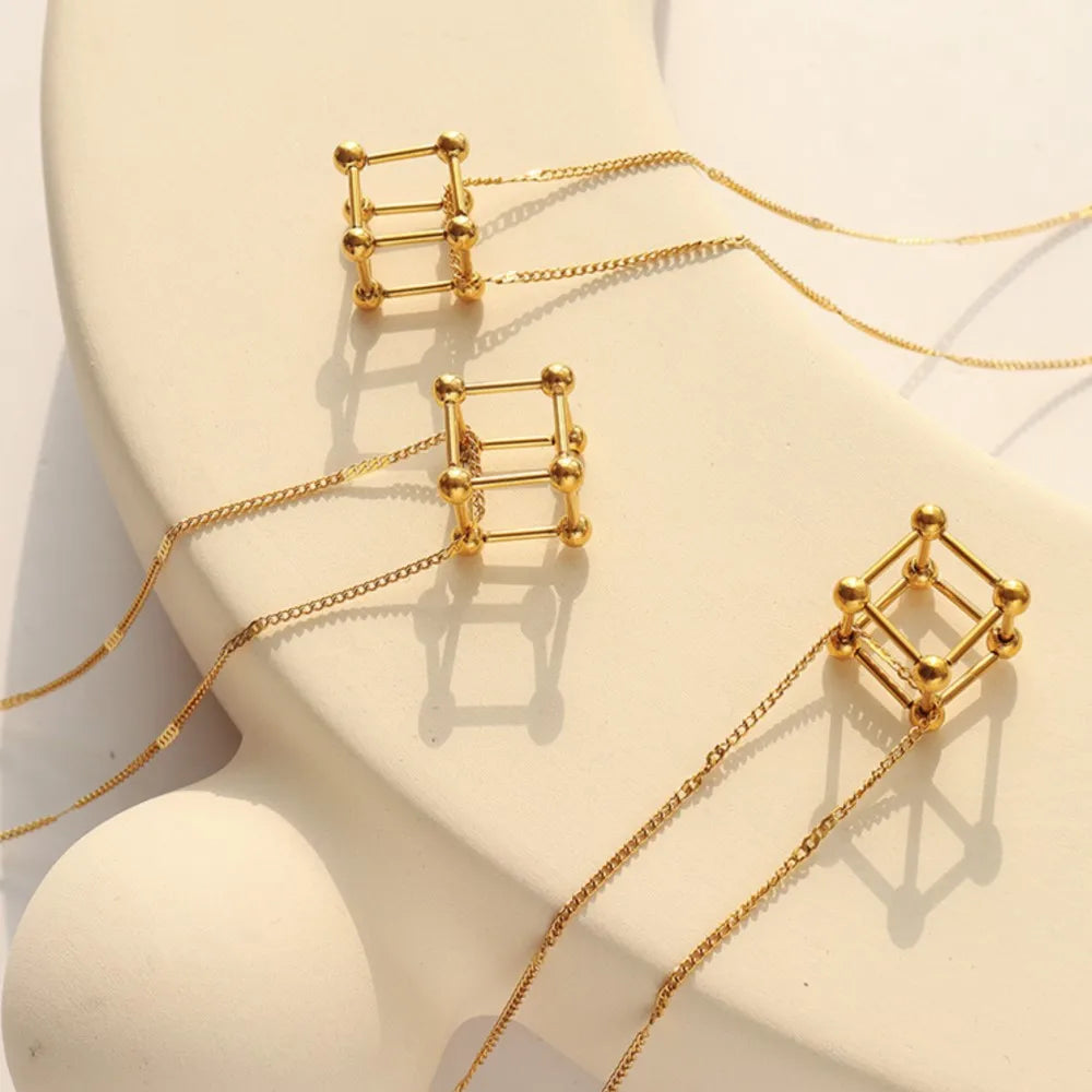 Geometrisch, modern und ausdrucksstark – diese Kette mit kubischem Anhänger setzt ein klares Statement. Die filigrane Konstruktion trifft auf goldene Eleganz und macht sie zu einem Highlight urbaner Looks.