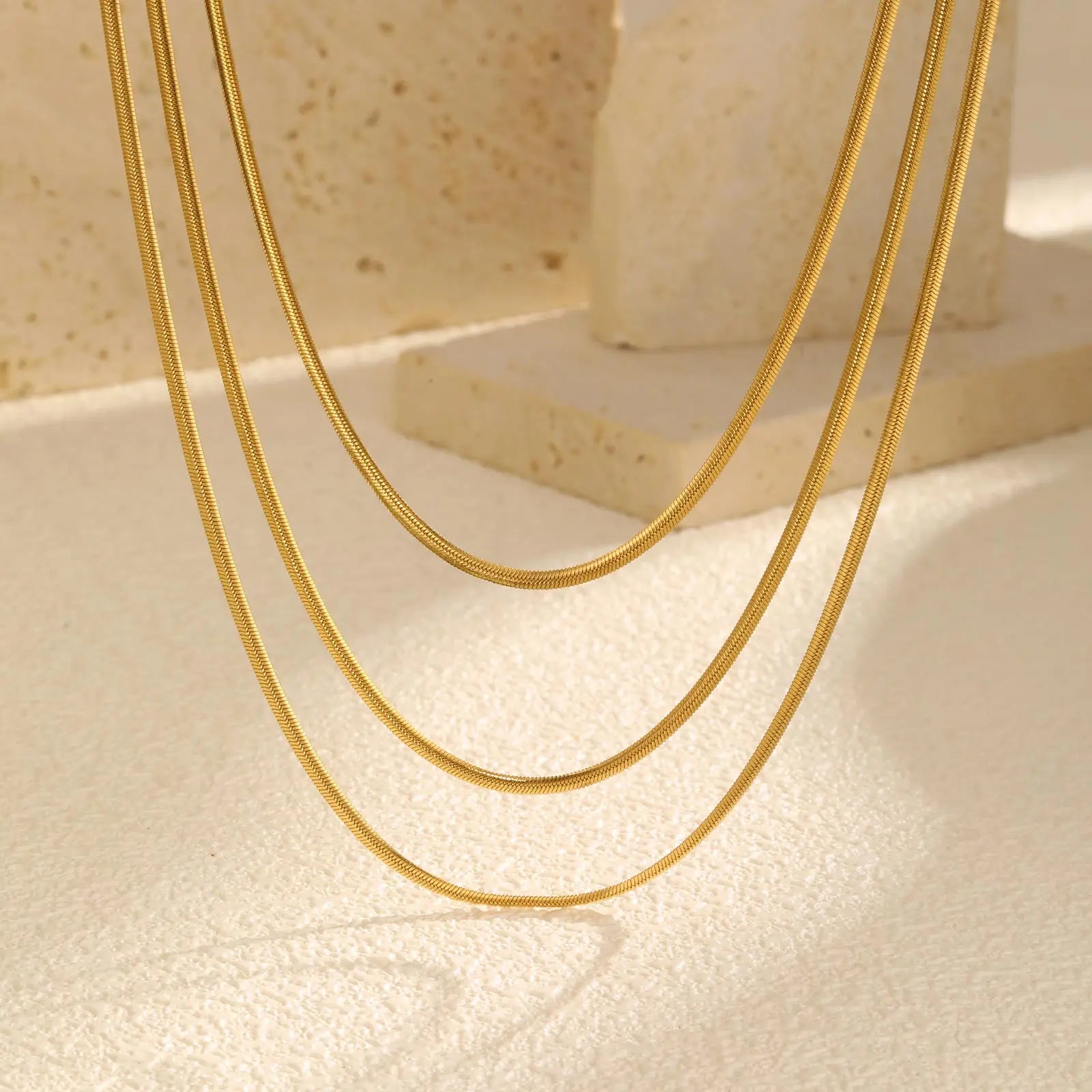 Drei filigrane Schlangenketten in einem – Linora ist zeitlos schön, ultraflach und perfekt zum Layern oder Solo-Tragen.