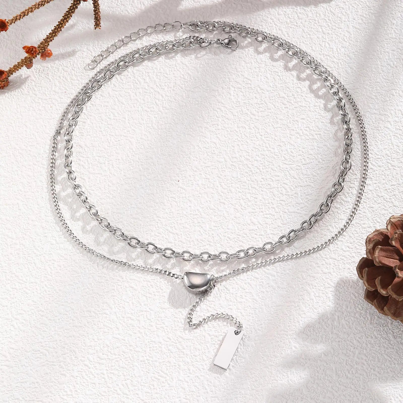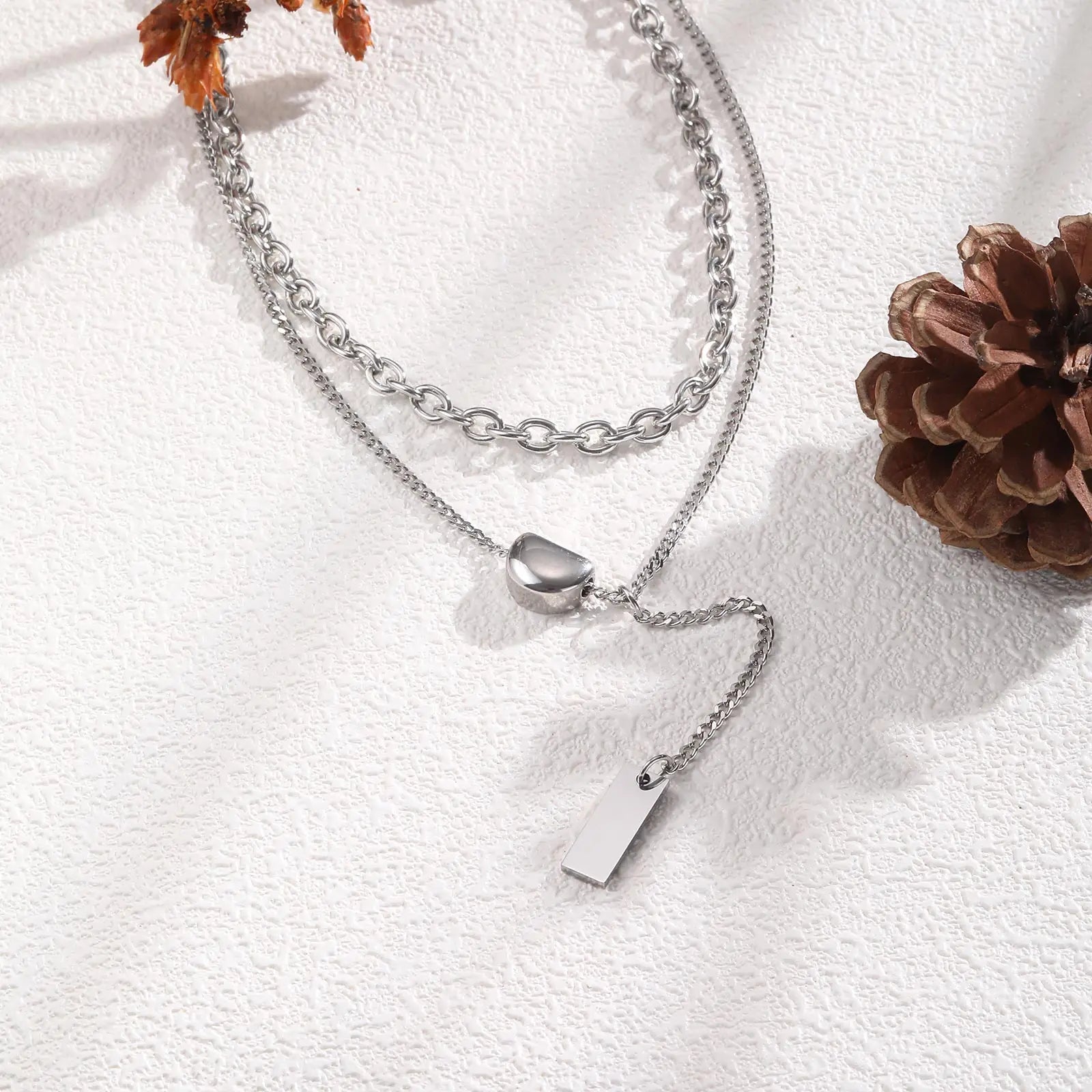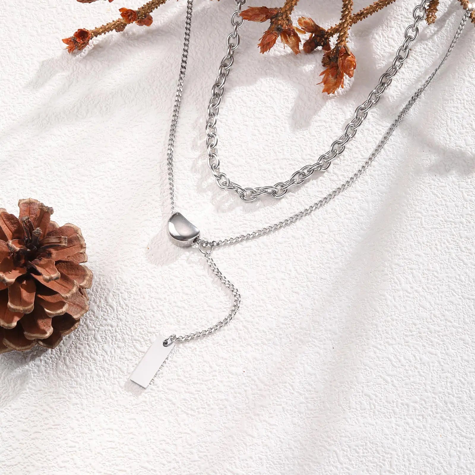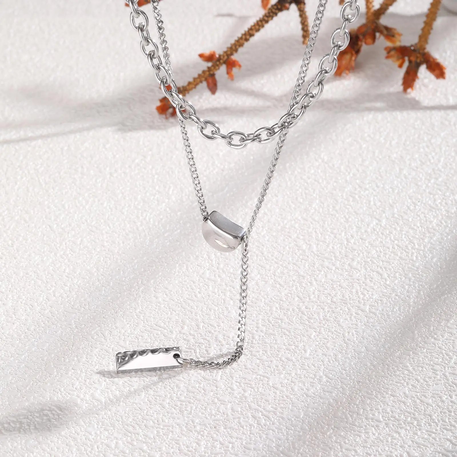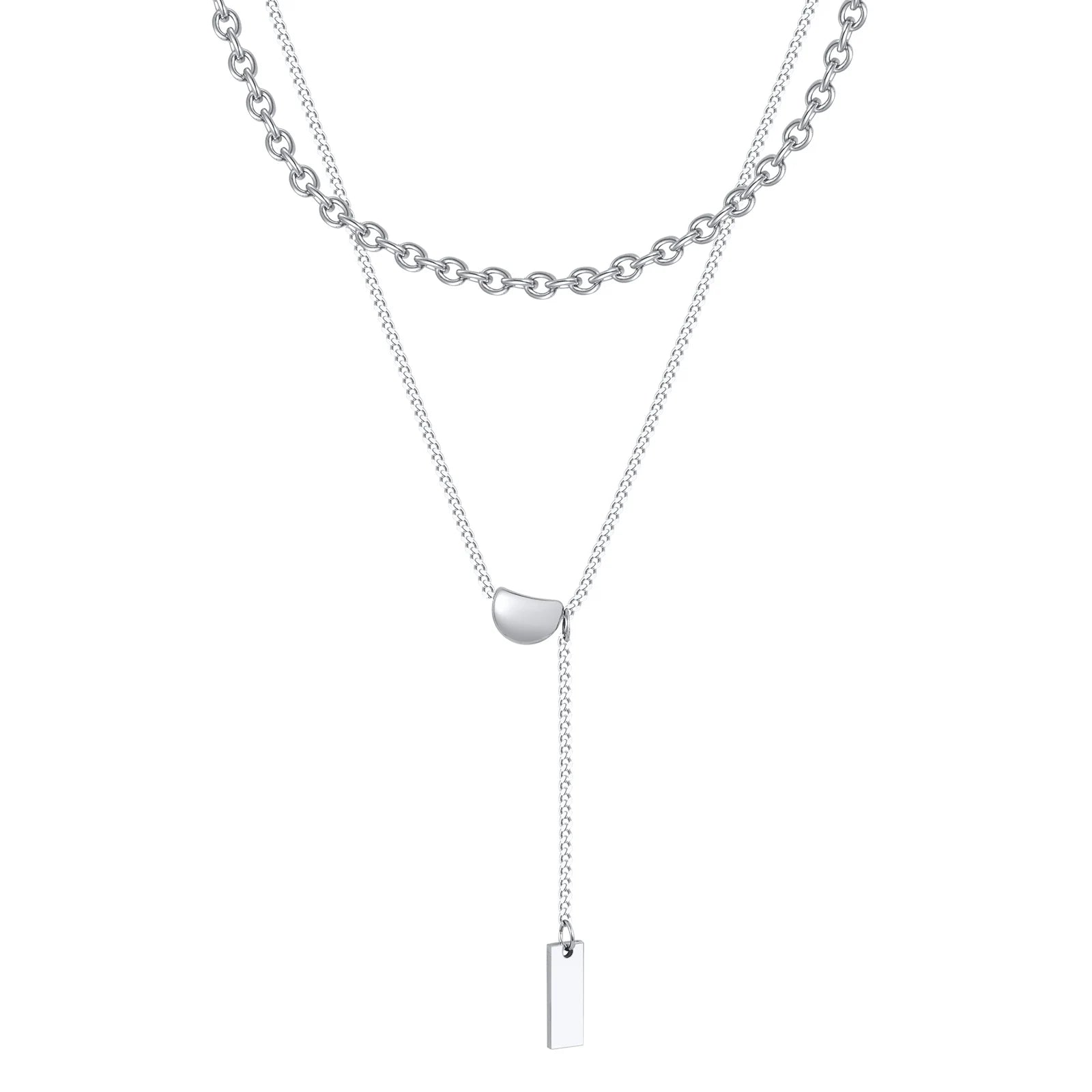 Ein modernes Layering-Design in kühlem Silberton: Diese zweireihige Kette kombiniert feine Glieder mit einer markanten Erbskette. Der minimalistische Look wird durch zwei bewegliche Anhänger abgerundet – schlicht, urban und absolut im Trend.