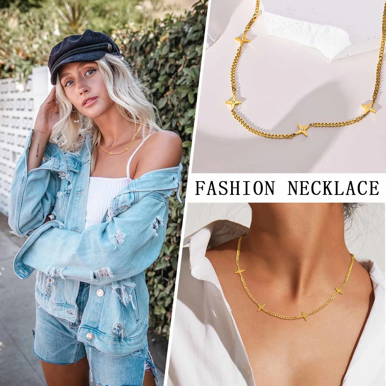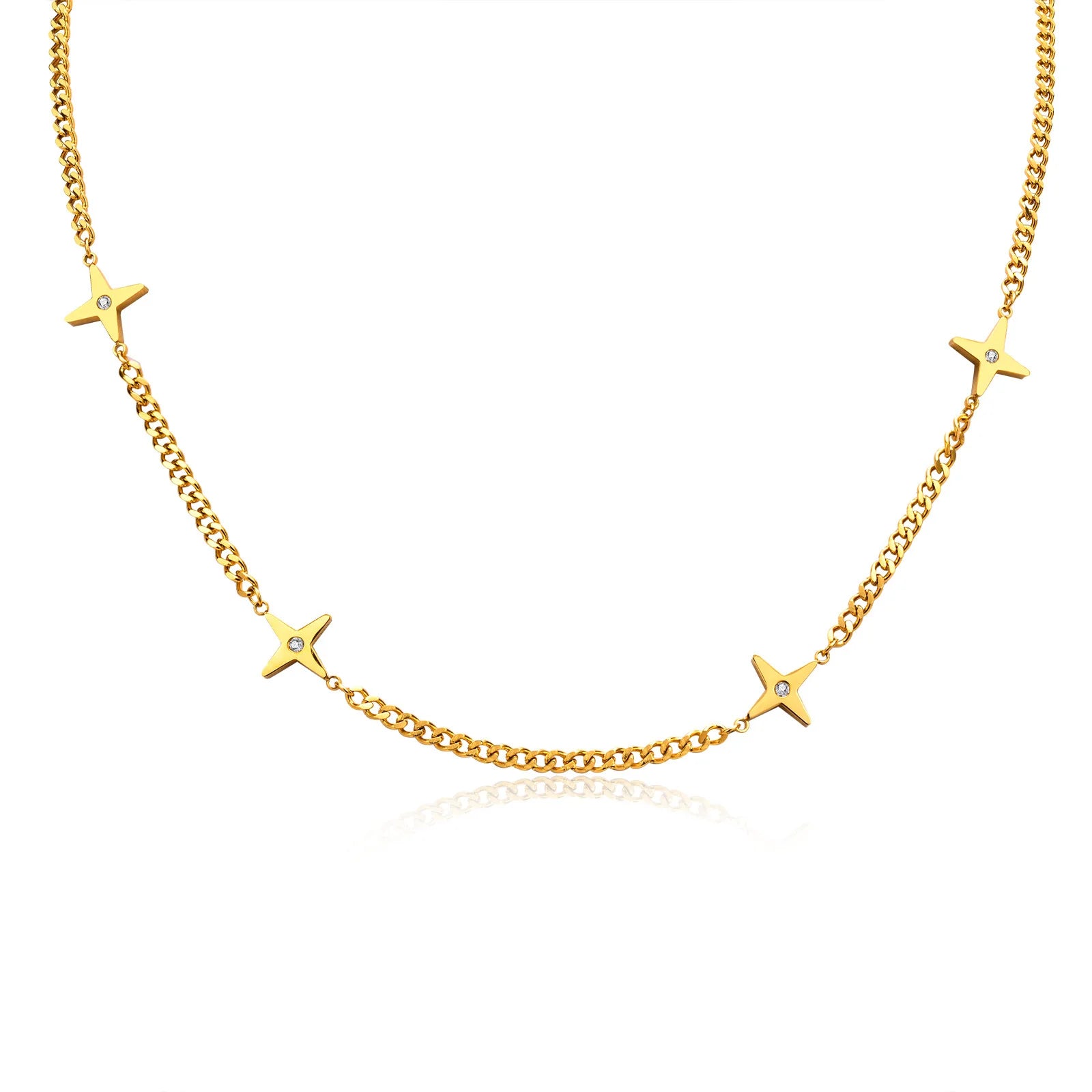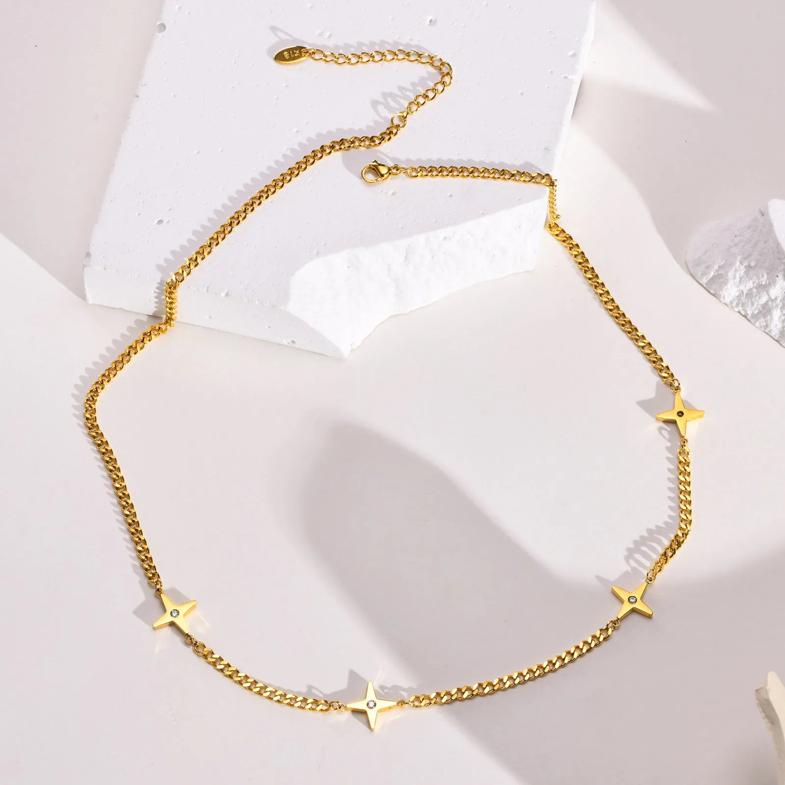 Diese Kette vereint zarte Glieder mit kleinen goldenen Sternen, die jeweils durch einen funkelnden Zirkonia betont werden. Ein verspielter Look mit edler Ausstrahlung – ideal für alle, die ihrem Outfit einen Hauch Sternenstaub verleihen möchten.