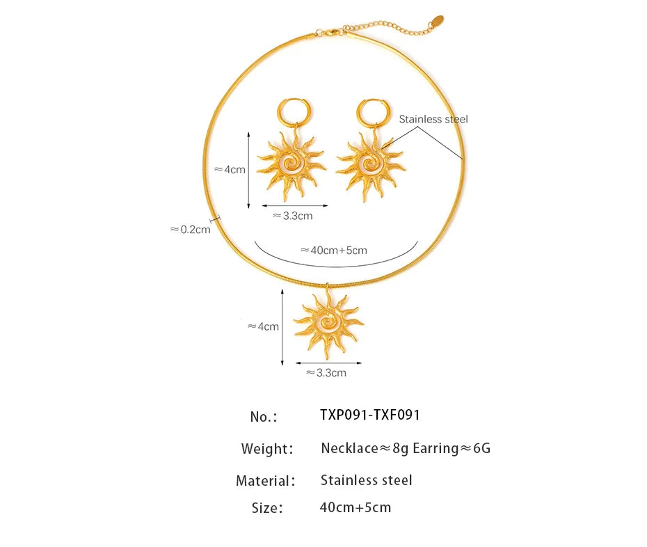 Ein Schmuck-Set wie ein Sommertraum: Die Spiralsonne fängt die Leichtigkeit warmer Tage ein und bringt sie in dein Outfit. Ob zusammen oder einzeln getragen – dieses Duo ist ein kraftvoller Hingucker.